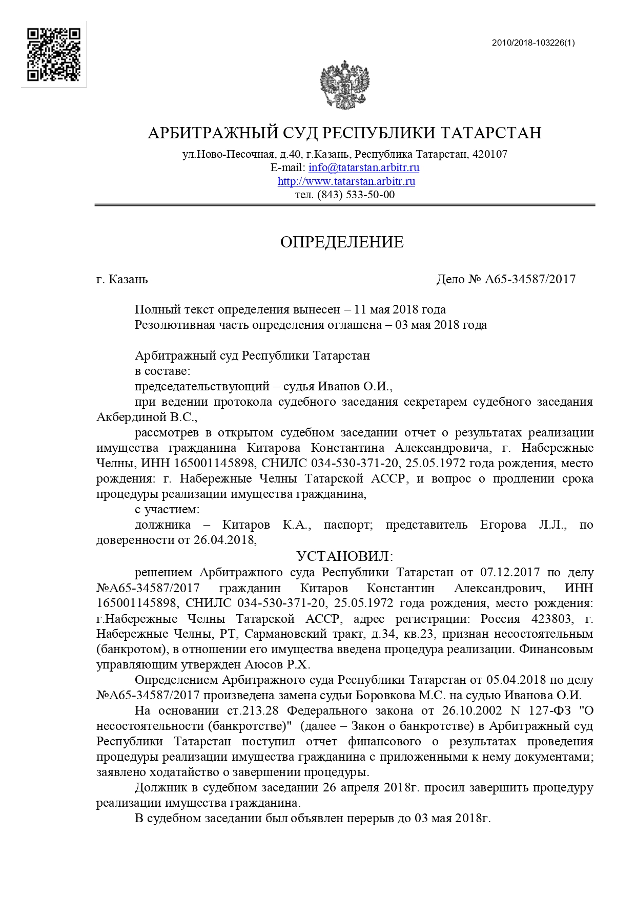 Дело № А65-34587/2017